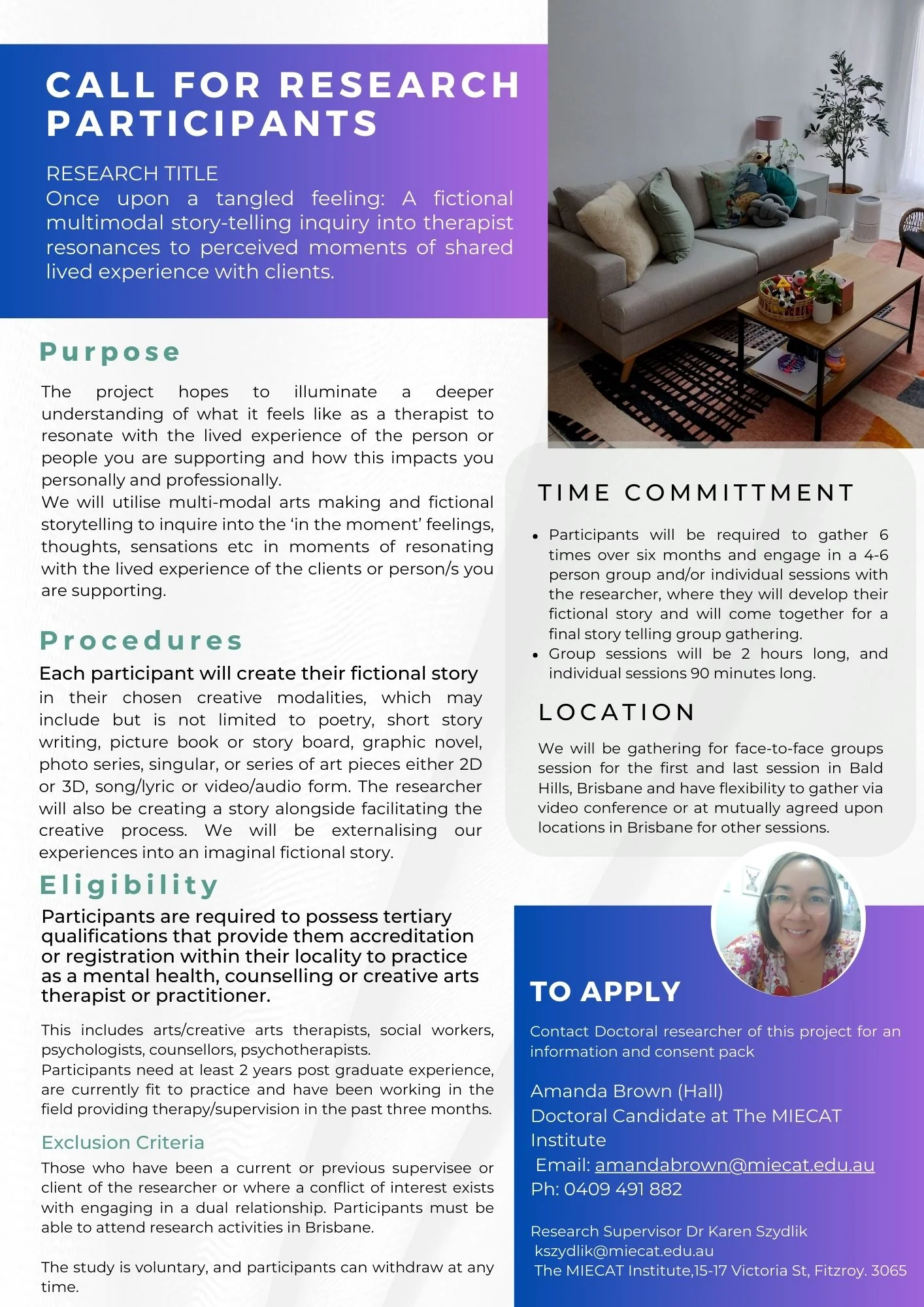 We sadly advise of the death of our candidate, Amanda Brown (Hall), in August 2024. We have decided to leave the presence of her research on this webpage to acknowledge Amanda’s work in this area and with the hope that it might inspire others. Our condolences go to Amanda’s family, friends, colleagues, and doctoral research community.